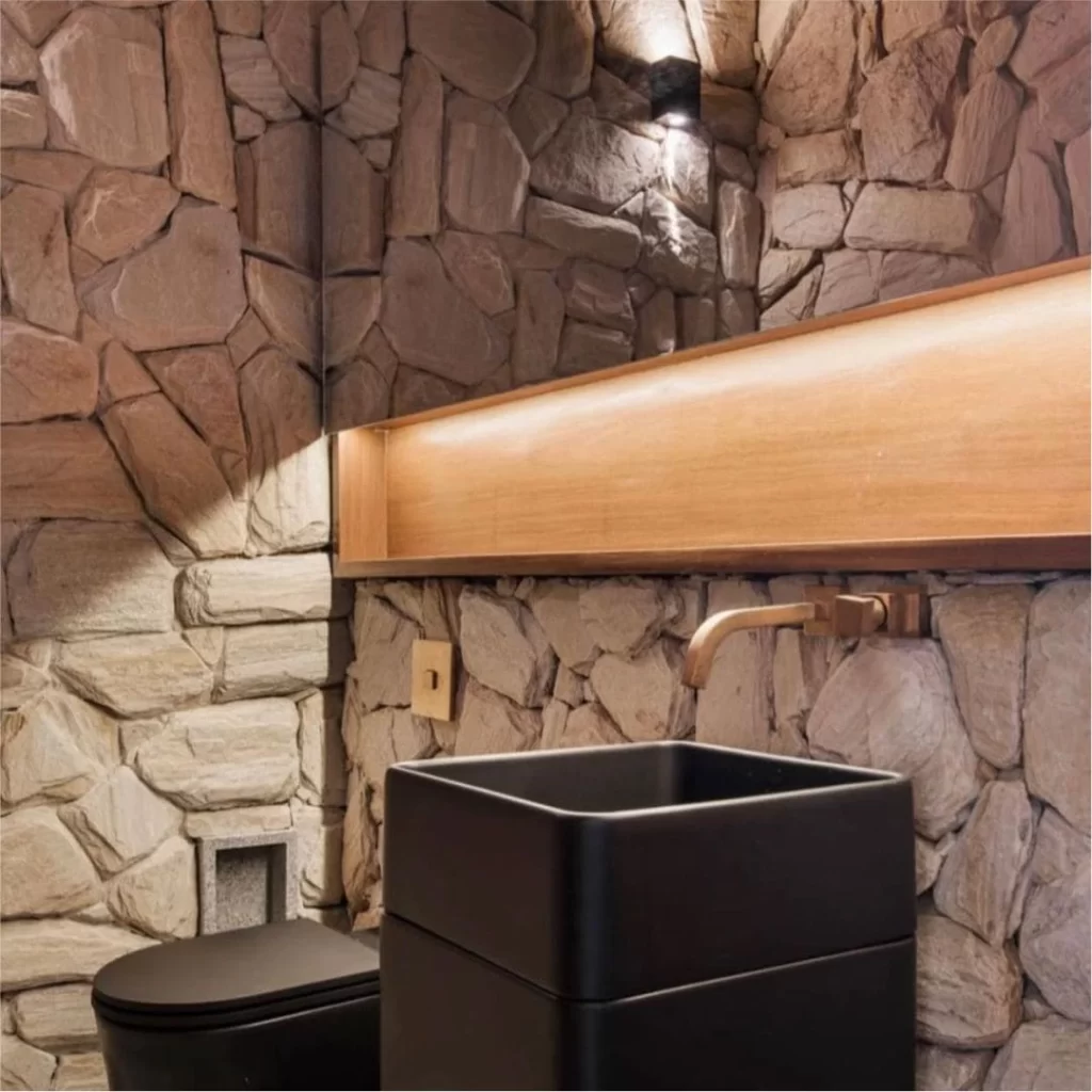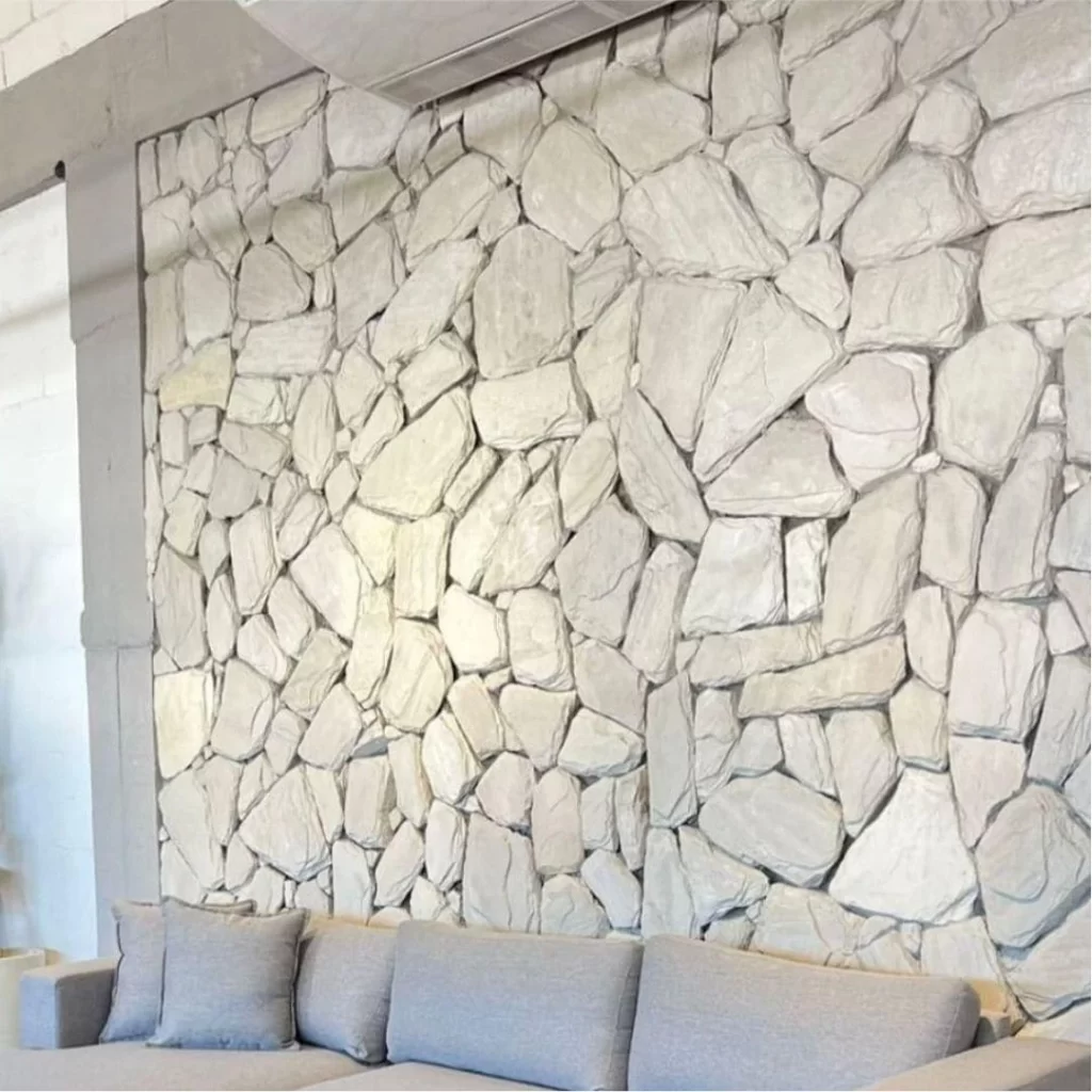 As pedras tipo Moledo são revestimentos naturais valorizados pelo visual rústico e orgânico. Embora “Moledo” seja uma rocha específica, o termo hoje designa um estilo que reproduz a beleza irregular das pedras naturais.