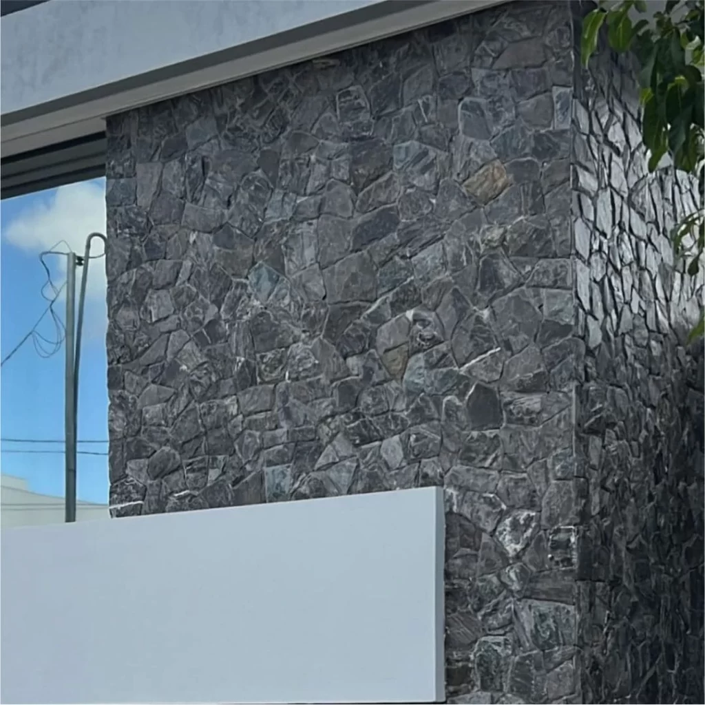 A Pedra Moledo Black destaca-se pelo contraste marcante entre a textura rústica e a profundidade dos tons escuros, conferindo um visual contemporâneo, elegante e imponente para projetos que buscam exclusividade e personalidade.